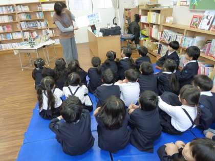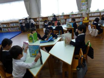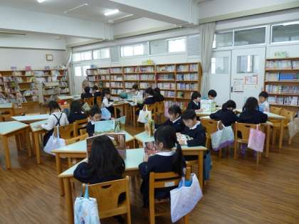 1年生の子どもたち、図書室での過ごし方もしっかりと身についています。