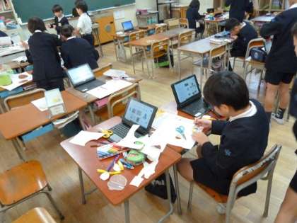 この後の発表会にむけてグループでいろいろなものを制作しているところでした。