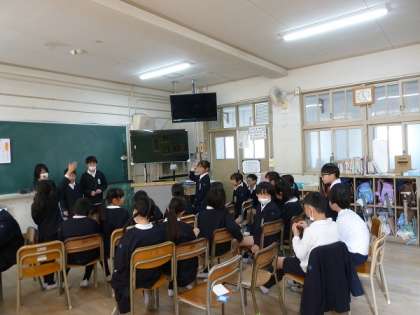4年生のお楽しみ会で、即興漫才を披露しているところに出会いました。