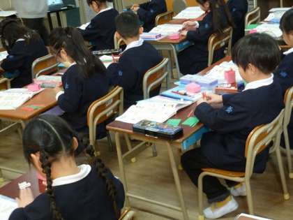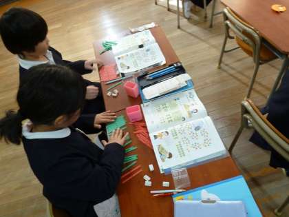 こんなときは10のまとまりを作ってすると全部でいくつかを数えやすいということを、一人一人が実際に棒を使って体験していました。