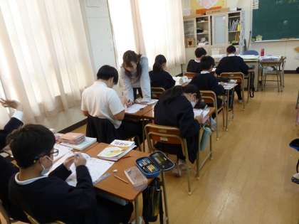 円の中心を六等分、五等分して正六角形や正五角形をかいてみたり、コンパスで等しく円を六等分してかいてみたりして、作図の練習をしていました。