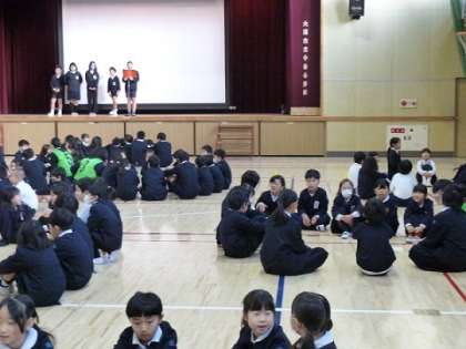 昨日の児童集会では、3つのヒントから当てはまるキャラクターを縦割りグループのみんなで考えて答えるというものでした。