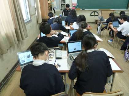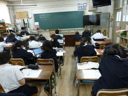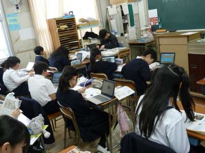 教科書にかいてあることから、自分がもっと調べてみたいと思うことを、各自がタブレットを使って調べています。