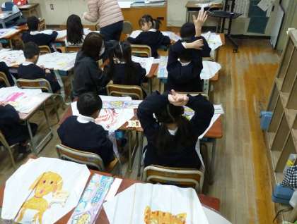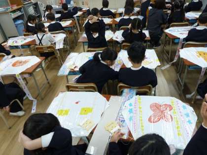 この時間は、凧をつくり、それぞれが自分の好きな絵を描いて、自分だけのオリジナルの凧が出来上がりました。