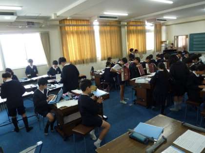 5年生が1組、2組合わせて合奏の練習をしていました。学年あわせての人数で演奏していると、音に迫力がありました。