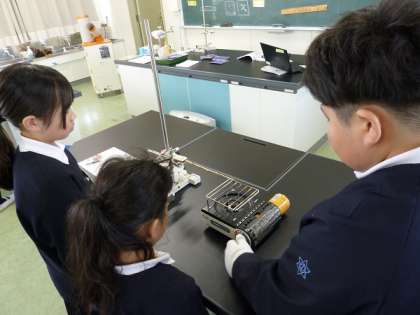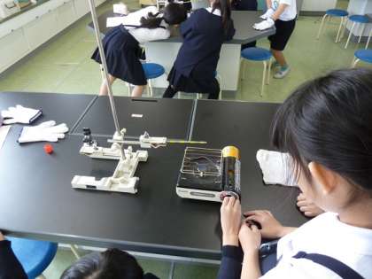 写真は金属の棒を温めた時の温まり方を実験しているところです。