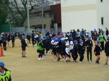 今日は、初日なので大繩を回すタイミングとか、みんなでジャンプするタイミングがとりづらかったと思います。金曜日まで晴れの日は毎日行うので、うまくタイミングがとれるようになってくると思います。