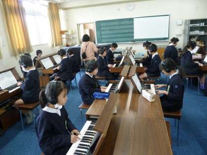 音楽室で、一人一人オルガンの練習をしていました。