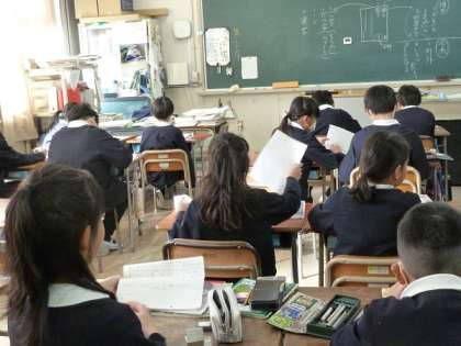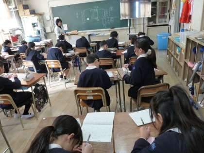理由を吟味しながら、自分の考えを書いた文章を相互に読み合って、理由があいまいでないか、間違っていないか、といった観点から、又、文字に誤字や脱字がないか、句読点がきちんと打たれているかなどを評価しあっているところでした。