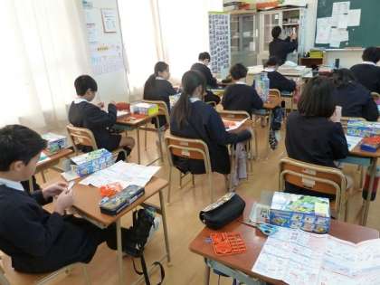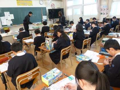 この時間はこれから、電流と電磁石を学習するにあたり、実験をするための道具の準備をしていました。中の銅線をうまく線の皮だけを切って、中の銅線が見えるようにするのは難しいかなと思いましたが、うまく仕上げていました。