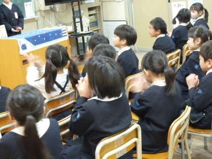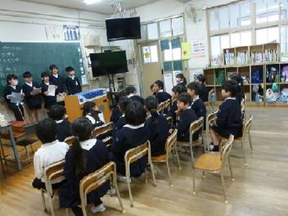 この時はクイズを出して分かった人が答えるというもので、1年生の子どもたちが楽しめる内容のクイズで盛り上がっていました。