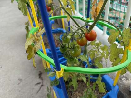 ミニトマトは、地面に落ちて、ころころ転がり、川へ。涼しい川へ。