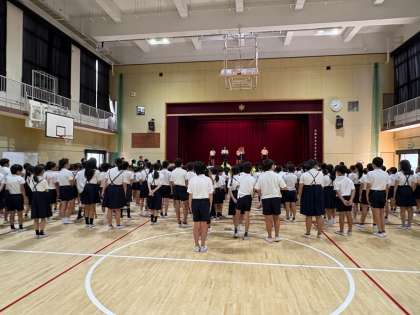 楽器がなっている間に、ボールを次の人に渡していきます。
