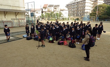 6年生は、今日から、1泊2日の修学旅行です。予定通り午前7時40分に学校を出発しました。見送りの保護者の方々や教職員に、子どもたちは、「行ってきます!」とうれしくてたまらないという表情で学校の門を出て行きました。