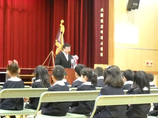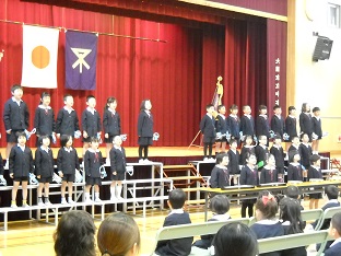 6年生と手をつなぎ、緊張した様子で講堂に入場しました。校長先生、PTA会長のお話もしっかり聞けて、すばらしかったです。2年生のお迎えの演技では、楽しい歌や呼びかけに大きな拍手が送られました。