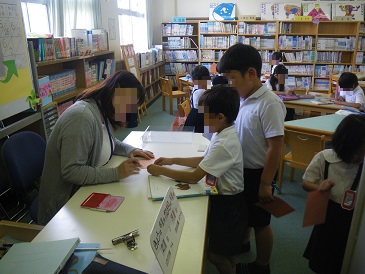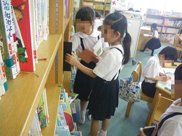 今日は1年生が図書室を利用していました。本を借りたり返したりする際に、子どもたち関わっています。また、先日は読み聞かせもしました。