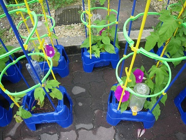 土日をはさんで、あさがおがたくさん咲き始めました。
