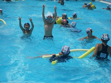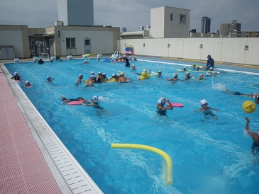 夏休み初日、多くの子どもたちがプール開放に参加しています。天気もよく、思う存分プールで楽しく過ごしていました。