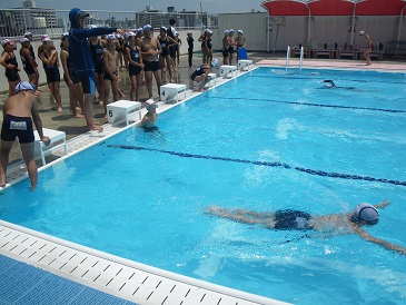 今日はすいすい教室の初日です。早速泳いでいます。毎年すいすい教室に参加する子どもたちは、最終日にはしっかり泳力をつけています。今年も少しでも泳力が身につくように、がんばってほしいです。