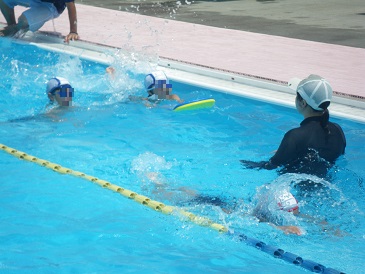 中本小学校では、プール開放後に、泳力を伸ばしたい4年生上の児童を対象に、すいすい教室(水泳教室)を行っています。