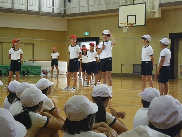 開会式の流れの説明、ラジオ体操を行い、最後の応援団から応援の説明を聞きました。