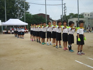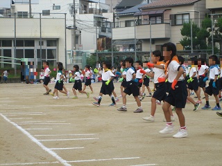 おとなには、少し懐かしい音楽からスタートした低学年の団体演技でした。小さな体で、一生懸命踊る子どもたちを見ていると、運動場全体が和やかになりました。さらに、今年は3曲も使用し、雨続きでなかなか運動場で練習できないの中、とてもかっこよく踊っていて、驚きました。