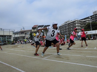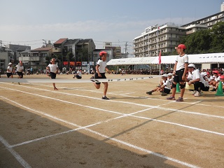 5年生は徒競走・リレーです。6年生負けないぐらい、いい走りをしていました。