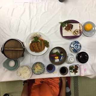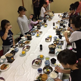 たくさん楽しんだ後は、豪華な夕食です。みんなおなか一杯食べています。