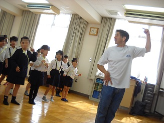 1〜4年生の授業です。高学年とはちがい、楽しんでネイティブの英語にふれる授業となります。