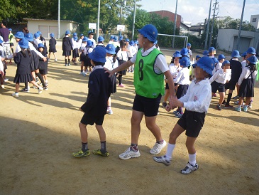 今日の活動は「仲間さがし」です。誕生日が同じ月の人、靴の色が同じ人、そんな仲間を探しました。靴の色は見るとわかりますが、自分と同じ誕生日の友だちを探すには、話しかけたり答えたりしないといけません。異学年とのコミュニケーションが生まれます。中本小学校の子ども達は、さまざまな活動の中で、たくさんのコミュニケーションをとっているので、楽しそうに活動していました。