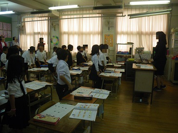 2組は音楽の授業を参観いただきました。先生のピアノに合わせて、リズムの学習です。