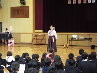 ふだんは民族学級のソンセンニムが、各学年と交流し、韓国・朝鮮の文化にふれます。