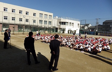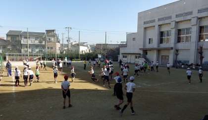 本庄中学校区の3小学校(中本小、東中本小、今里小)の6年生が今里小学校に集い、ドッジボールや長縄跳びのスポーツを通して、交流しました。
