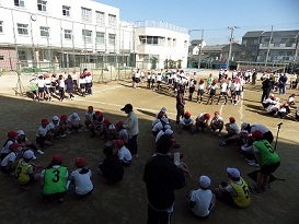 3小学校の混合チームに分かれて自己紹介をした後、チームで協力してスポーツを楽しむことができました。終了時には、どのチームの子どもたちも和やかな雰囲気の中で、「今日は楽しかったです。」と感想を述べ合っていました。