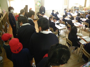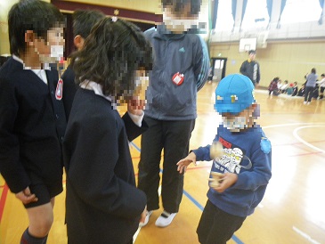 中本小学校近隣の中本保育所・北中本保育所の子どもたちが、小学校に遊びに来てくれました。5年生が小学校生活についてのお話と学校を案内しました。その後1年生といっしょに、昔遊びを楽しみました。
