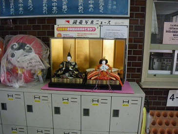 玄関では、お内裏様とお雛様がみなさんをお迎えします。
