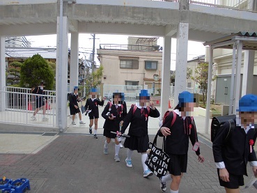 小学校、最後の下校です。笑顔いっぱいの下校となりました。