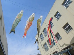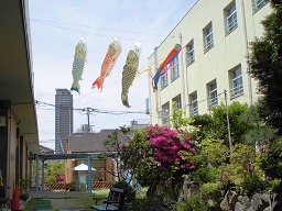 本校舎と北校舎の間の中庭のところで泳いでいます。5月5日は子どもの日です。中本小学校のこいのぼりのように、体も心も大きく育ってほしいですね!