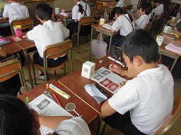 よい歯や歯ぐきとはどのような状態なのか,きちんと歯みがきができているのかなどをワークシートを使って考えたり,実際に染め出しをして確かめたりしました。
