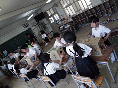 ・箱の中に手を入れて,中に入っているものは何かを当てます。学
