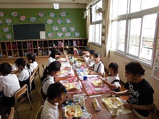 教職員も各教室で食べ,子どもたちとの交流ができました。