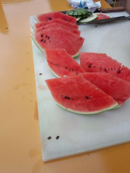 山登り後、ゴールした班からスイカをいただきました!