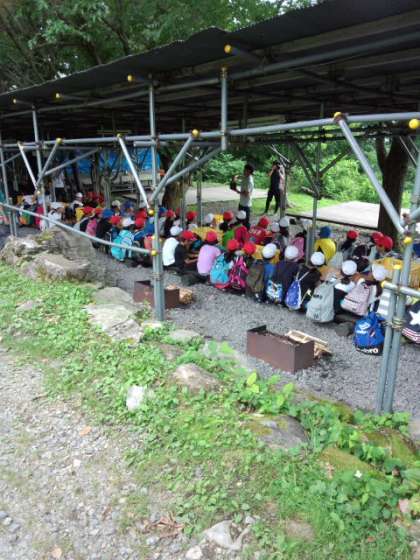 山を登り、疲れているとは思いますが、自分たちの昼食がかかった大切な活動です!まずはしっかり説明を受けています。