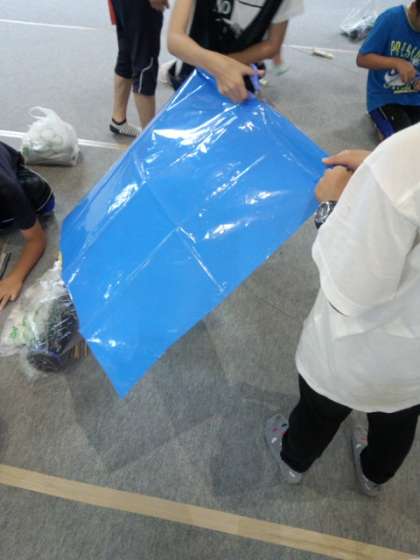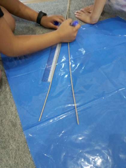 明日の活動の一つ、凧あげに向けて、1人一つずつ作ります。