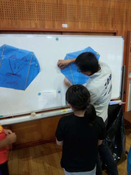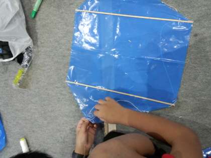 凧づくりはいよいよ最難関の作業工程に差し掛かりました!