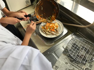 9月12日(火)の放課後に,給食委員会が大阪市の給食献立コンクールに向けて, 調理実習を行いました。