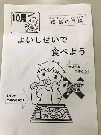 ・給食目標「よいしせいで食べよう」