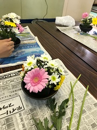 今回はガーベラなどを使い,ベースとなるところまでは先生に教えていただき,残りは自分の感性で仕上げていきました。どれを見ても,独自性のある素晴らしい作品になっていました!