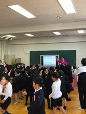 1年生は「あいさつ・じゃんけんに親しもう」というテーマで活動しました。音楽に合わせて韓国朝鮮のじゃんけんをしたり,手遊びをしたりして楽しみました。日本のじゃんけんとの違いなどを知ることができました。