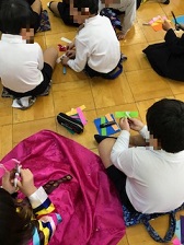 2年生は「韓国・朝鮮の服装について知ろう」というテーマで活動しました。挨拶について学んだ後,韓国朝鮮の服装について,チョゴリの特性や呼び方などを知りました。最後は折り紙を使って,チマチョゴリを折りました。なかなか難しかったようですが,何とか完成したようです。